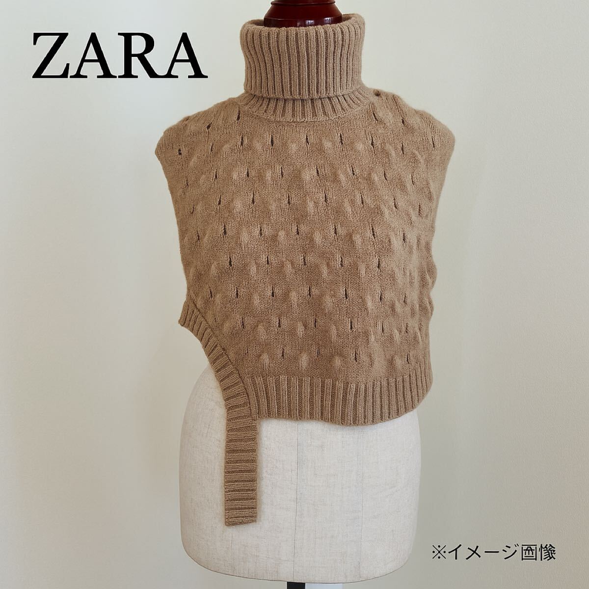 - ZARA タートルニットベスト Sサイズ ベージュ スリット入り レイヤード 秋冬