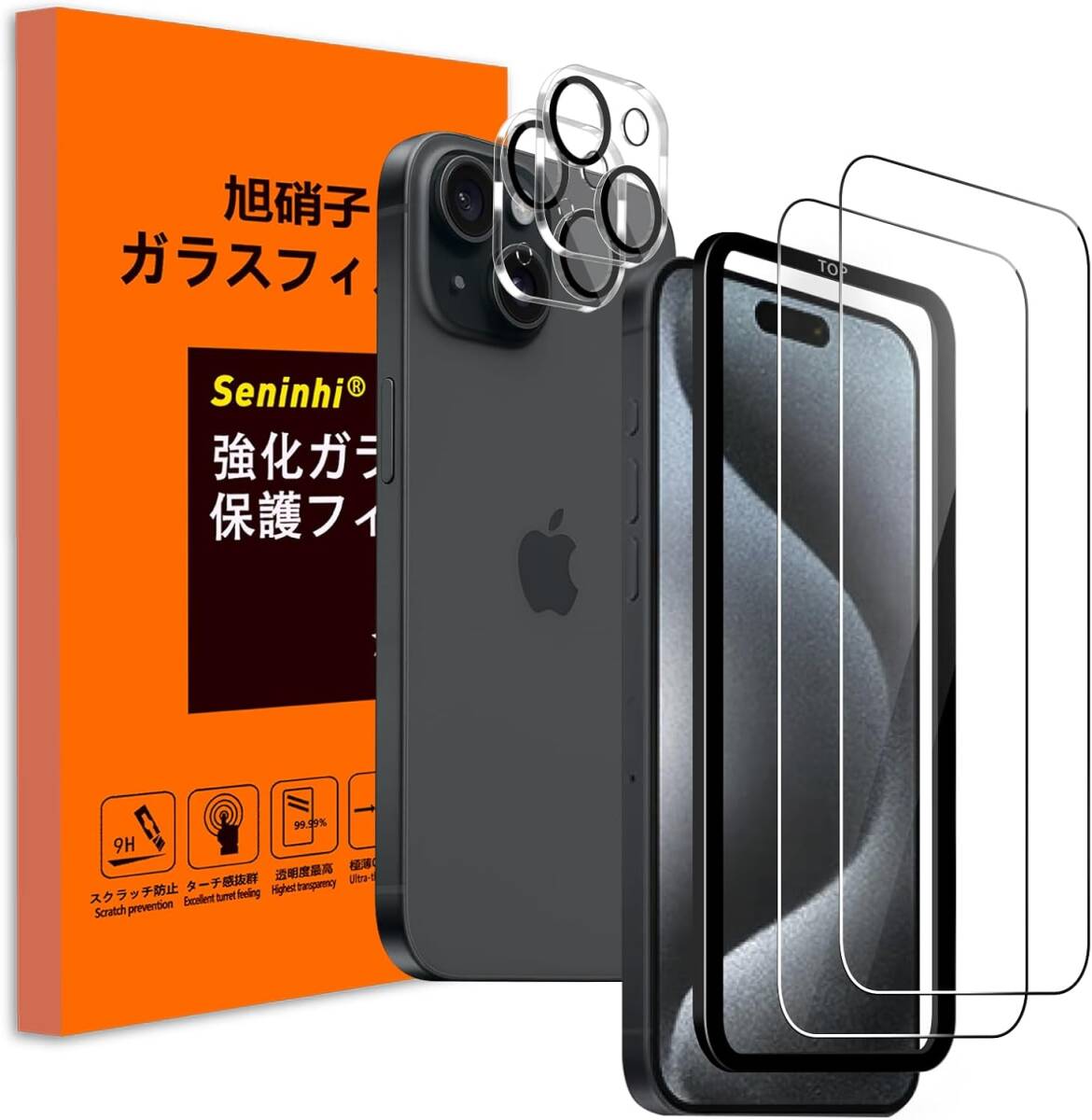 > Seninhi ガイド枠付き ガラスフィルム iPhone 15 用 強化 ガラス カメラフィルム 【2+2枚セット】6.1インチ