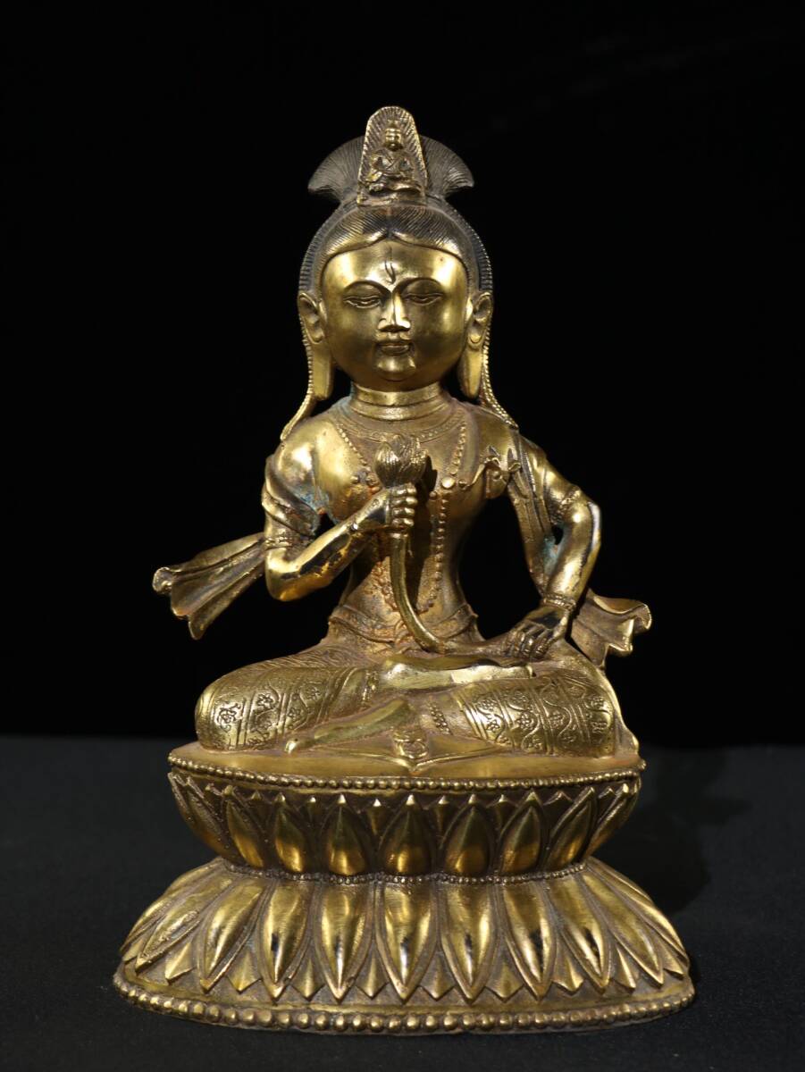 - 蔵友旧蔵出 銅製 塗金 蓮花觀音像 供奉仏像擺件 希少珍品 貴重品 置物 古賞物 密宗密教 供養品 仏教美術品