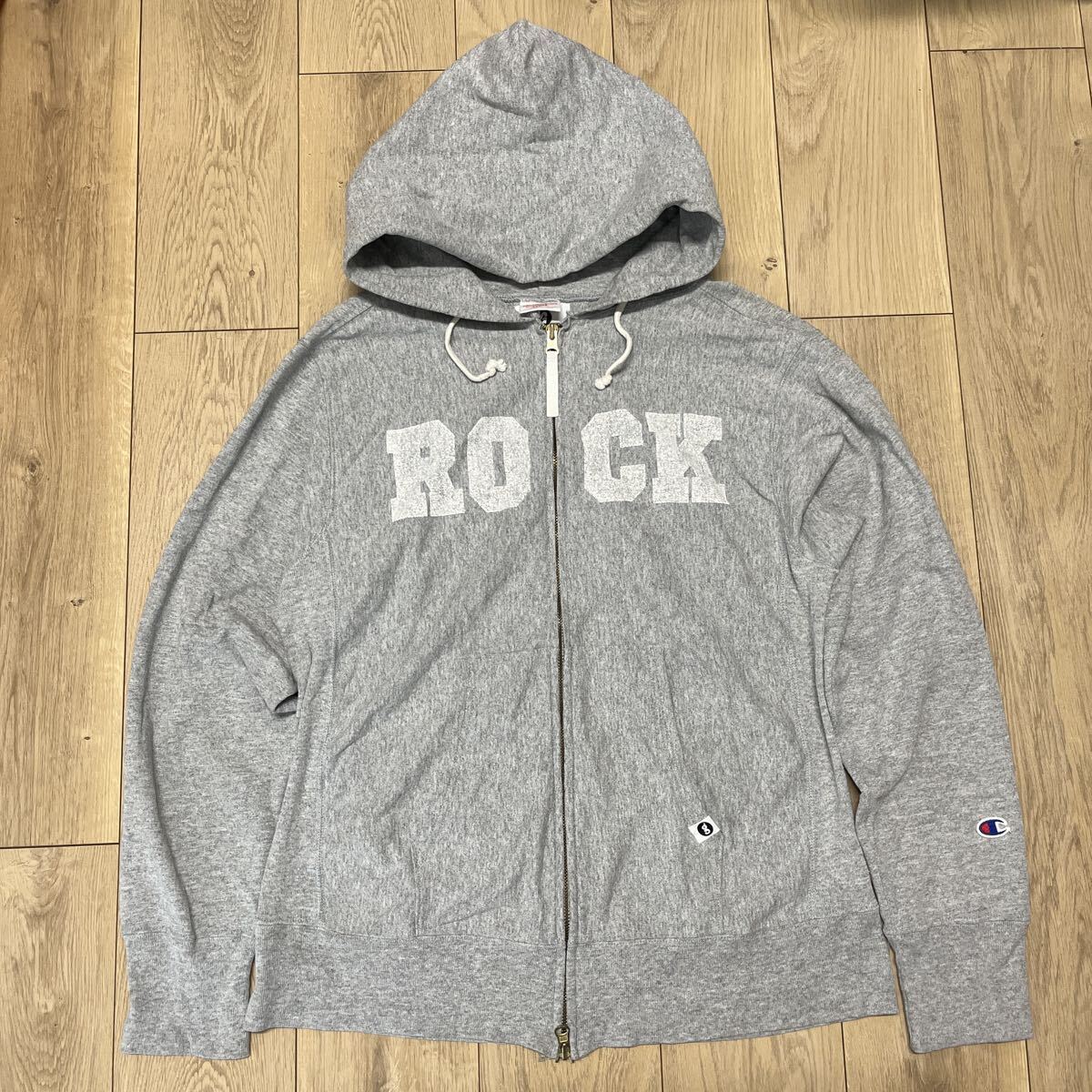 > GOODENOUGH 2010年代 ROCK ジップアップパーカー チャンピオン USA製 ボディ IDEALジッパー Lサイズ リバースウィーブ グレー グッドイナフ