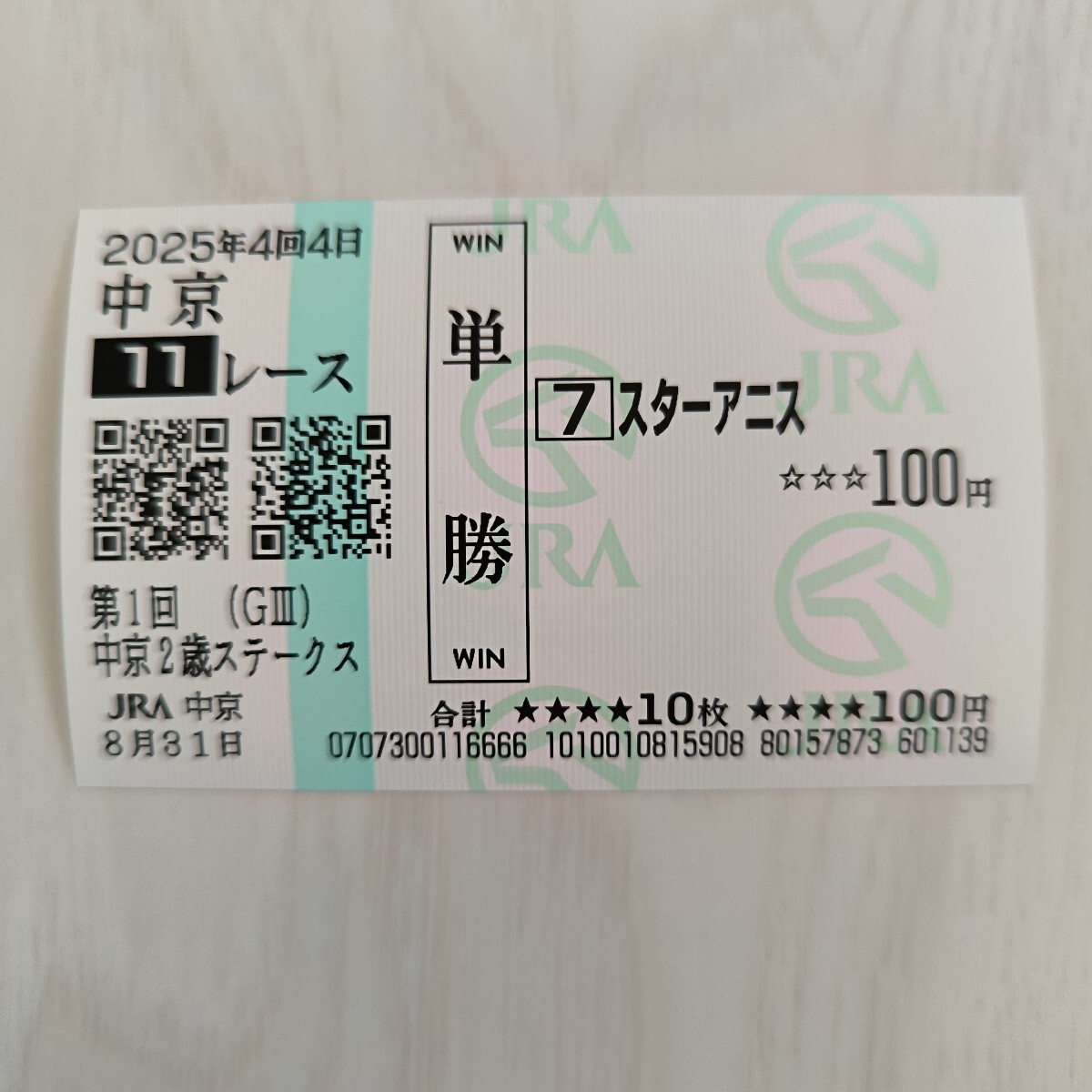 - 中京2歳ステークス2025 スターアニス 現地単勝馬券 匿名発送