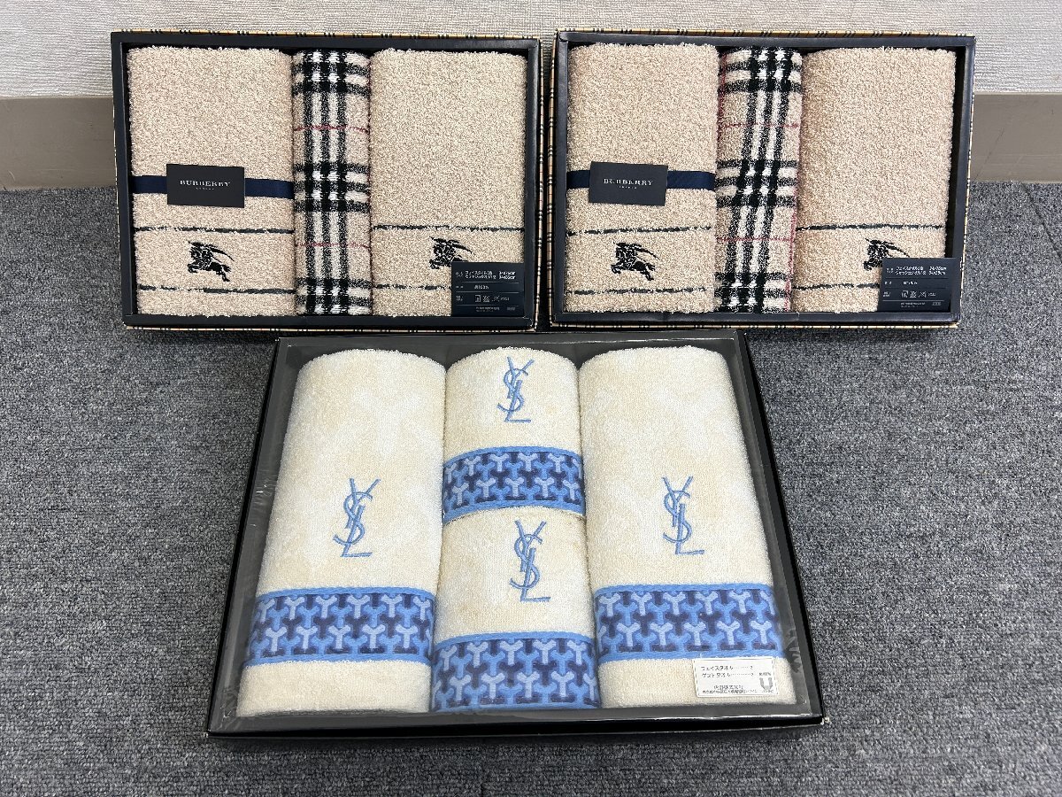 - 【未使用品/まとめ売り】ブランド タオル バーバリー イブサンローラン 訳あり ニオイ シミ 箱付き フェイスタオル ウォッシュタオル