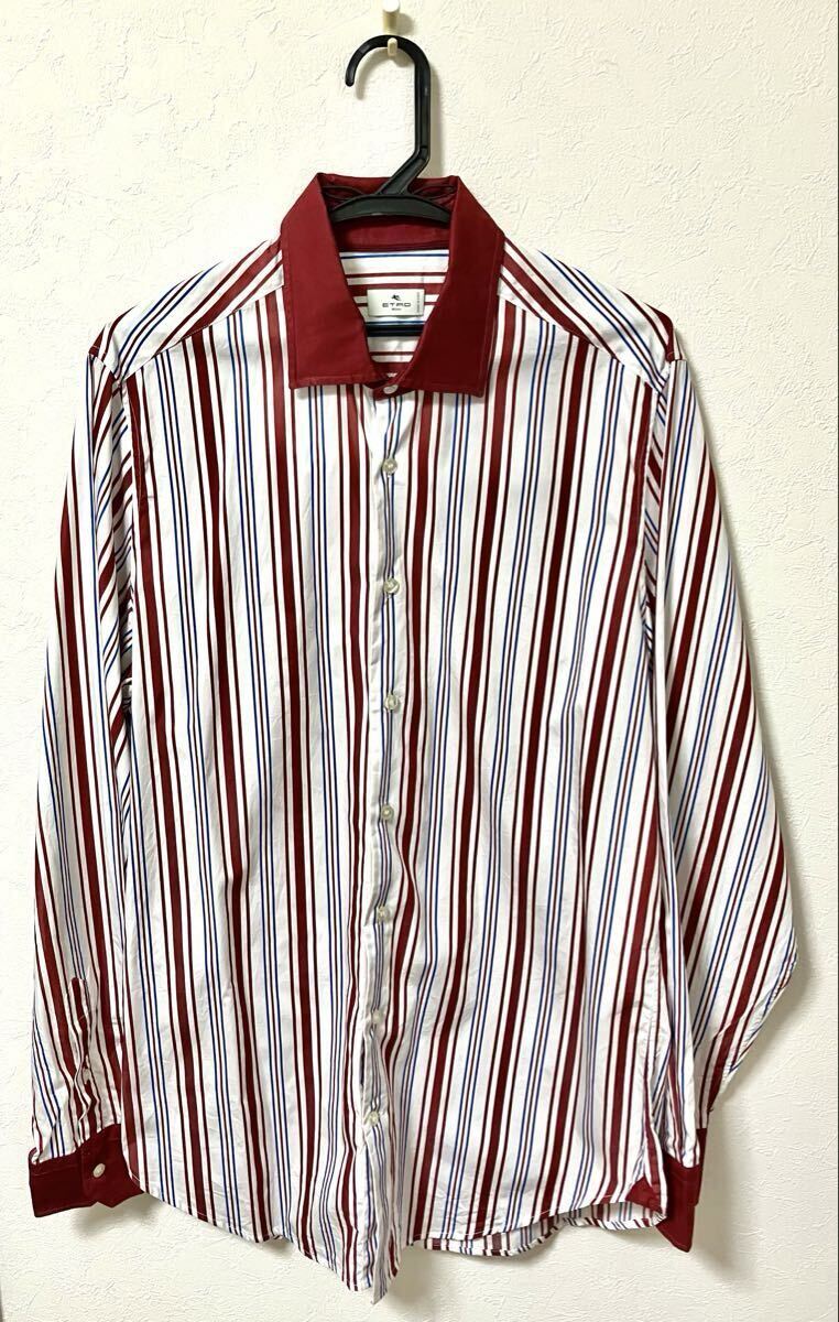 - 【美品】ETRO エトロ ストライプ長袖シャツ(41サイズ)/ドレスシャツ/トップス/イタリア製/コットン/高級感/メンズ