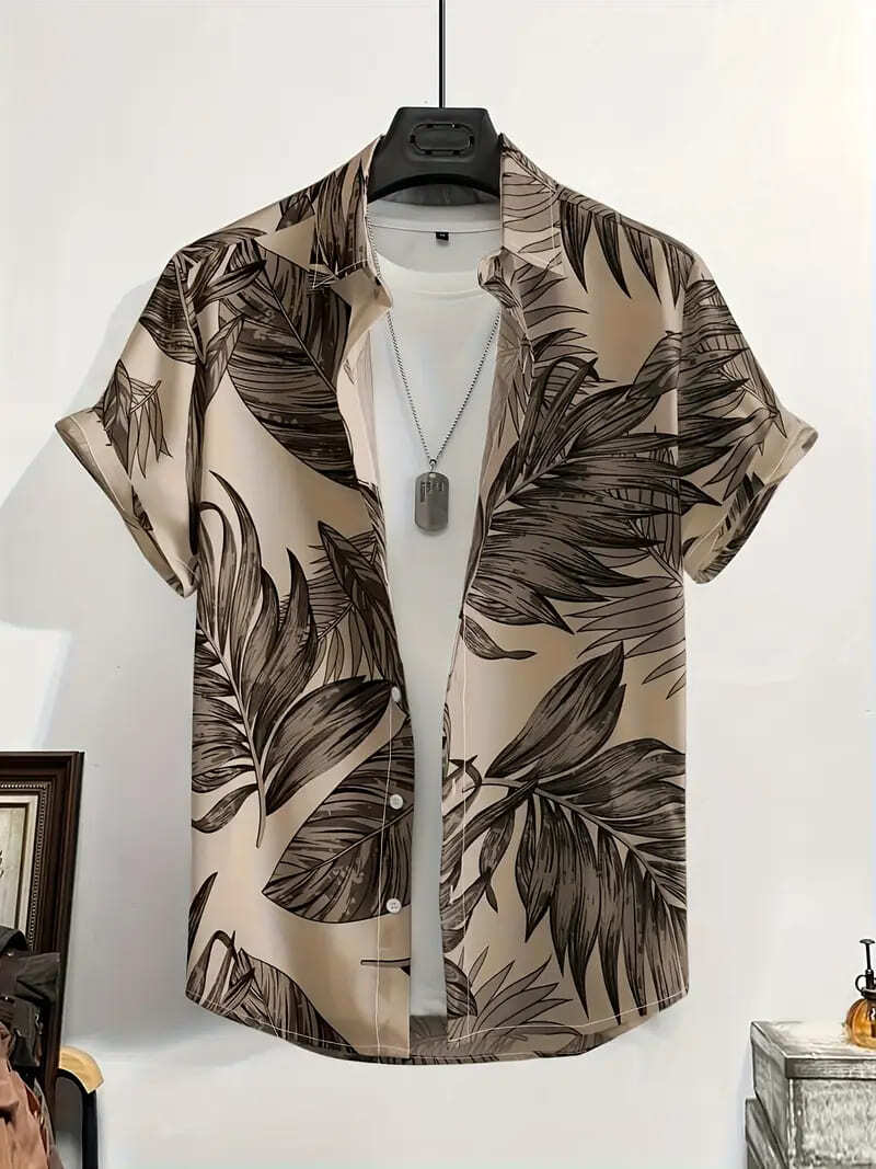 - リーフ柄 半袖シャツ アロハシャツ 331 ブラウン ヤクザ ヤンキー オラオラ ストリート ダンス HIPHOP B系 ホスト 服 メンズ ファッション