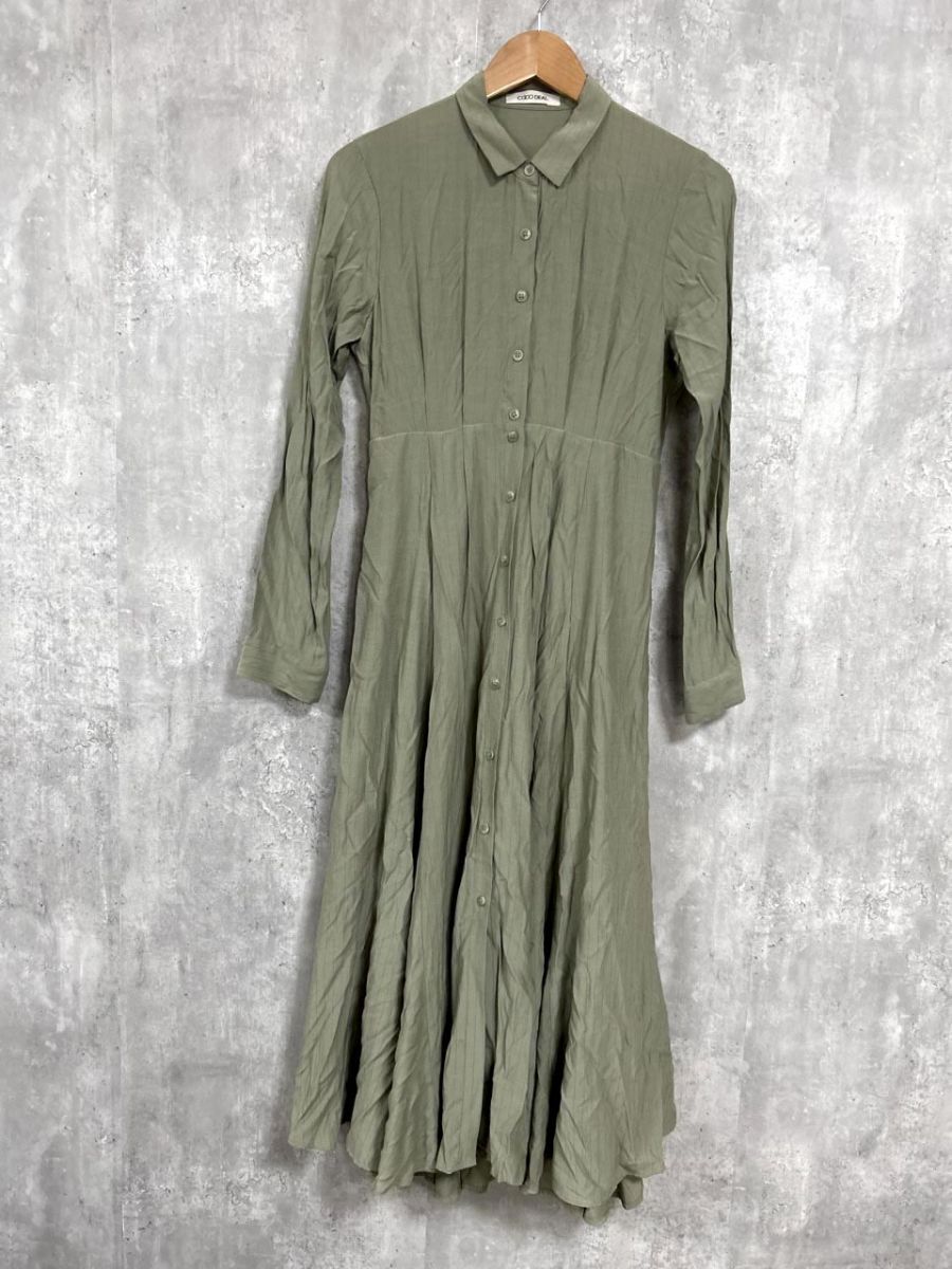 - ネコポスOK COCODEAL ココディール 長袖 ストライプ フレア ワンピース size2/オリーブ ■◇ レディース