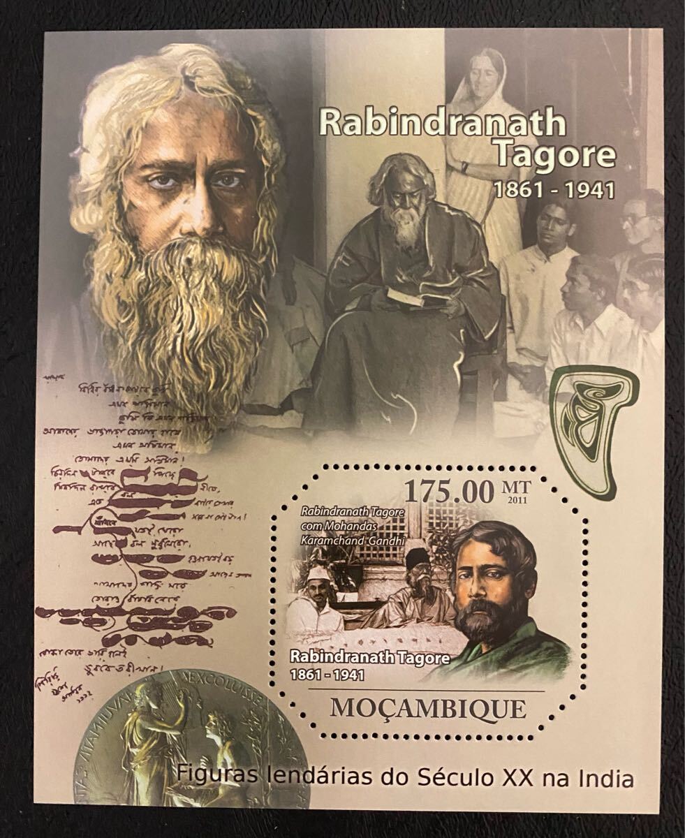 - モザンビーク 詩人 ラビンドラナート・タゴール ノーベル文学賞 インド国歌の作詞・作曲者 音楽 小型シート1種 未使用 NH