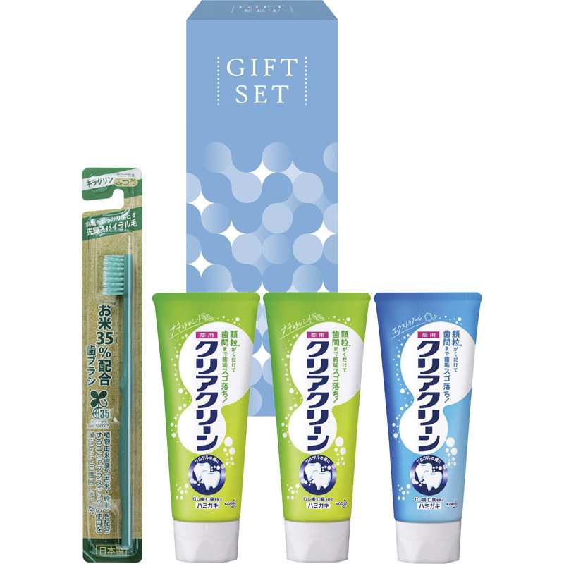 〇注意事項・送料800円が販売価格に含まれています・お取り寄せ商品です。弊社にて手配後、メーカー・卸業者からの直送になります。・まれにメーカー欠品、出荷遅延等が発生致します。問題発生時は別途メールにてご連絡致します。・配送方法の指定、日時指定、置き配、ギフト対応、他商品との同梱配送などは対応できません。・まとめ買いや複数購入の場合は通常より発送に時間が掛かる場合がございます・複数個口の場合、2階以上への搬入ができない場合があります。(その場合は1階での受け渡しとなります)・大型連休、お盆、年末年始などは発送をお休みさせていただく場合がございます・メーカー都合により、パッケージは予告なく変更される場合がございます・梱包用のダンボールはリサイクル品を使用させていただきます。・注文に関するご連絡(注文確定通知・発送通知など)はメールでご案内させていただきます※商品ページの内容について、少しでもご不明な点などがございましたら購入前に一度ご連絡ください〇商品説明あらゆるギフトシーンにおすすめです!花王クリアクリーン 顆粒(掃除剤)がくだけて、ハブラシが届かない歯間の歯垢まで押し出し、歯垢スゴ落ち!すみずみツルツルの歯に。・フッ素配合:むし歯の発生と進行を防ぐ。・口中を浄化。口臭を防ぐ。・医薬部外品 ●お米で作ったecoなハブラシ 食用に適さない古米や砕米を約35%配合。1.プラスチック使用量を35%削減。2.廃棄されるお米を使うことで食品ロスの削減。3.工業米の育成促進による耕作放棄地の活用、CO2の削減ースパイラルフラット極細毛&スパイラルフラット毛採用ー「スパイラルフラット毛」のらせん状のエッ〇商品仕様●内容:花王クリアクリーン120g×3(ナチュラルミント×2、エクストラクール×1)、キラグリン(お米35%配合ハブラシ)×1規格●化粧箱入(90×234×65mm) 450g●加工地:日本(出典:株式会社 八大)