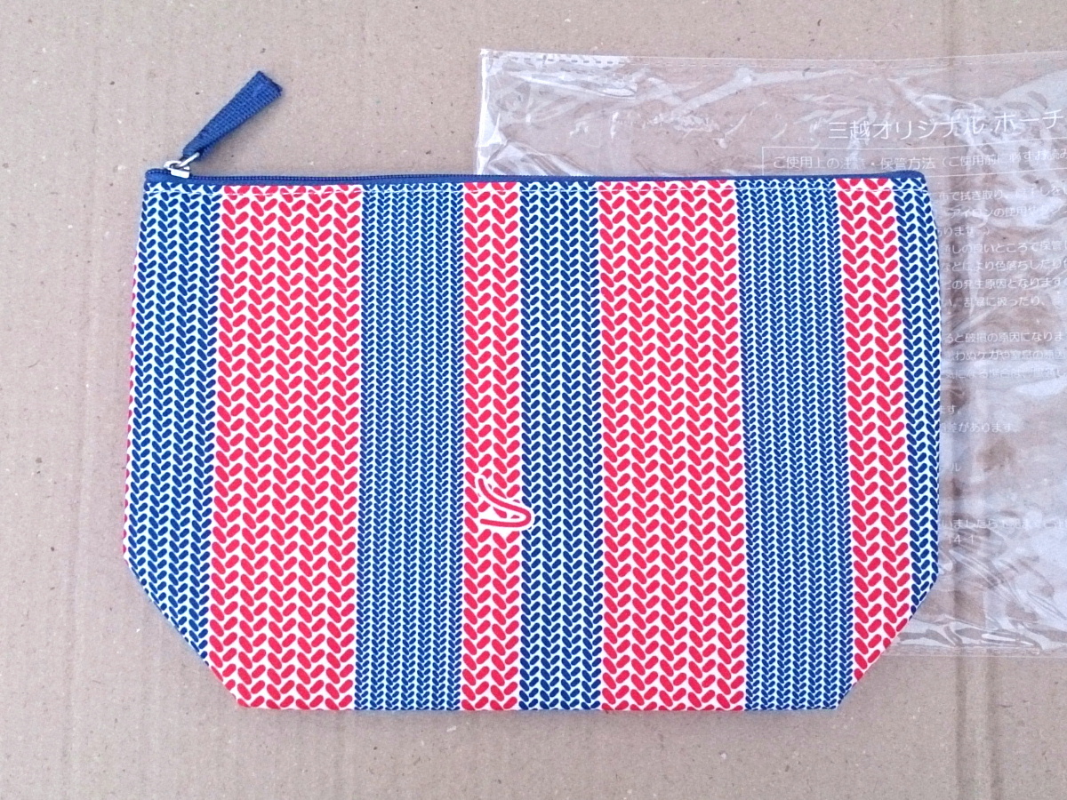 - ★三越★オリジナルポーチ 縦縞柄 クッション入り素材 非売品 未使用 長期保管品!