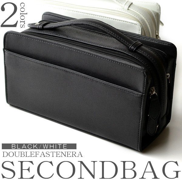 - フェイクレザーサフィアーノ柄ダブルファスナー大容量セカンドバッグ■No.2042T■メンズポーチ■ブラック×1個
