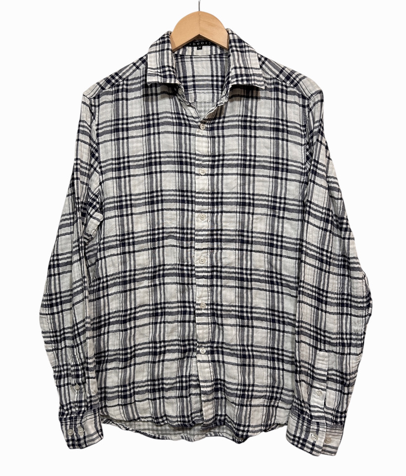 - 美品★Theory セオリー シワ加工 チェック 長袖シャツ 38 白 紺 ホワイト ネイビー 日本製 メンズ 男性用 ガーゼシャツ