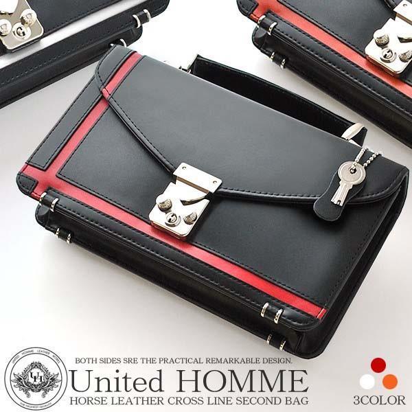 - 【unitedHOMME】馬革×クロスライン鍵付きセカンドバッグ■UH-2462■財布要らずのメンズポーチ■ オレンジライン×1個