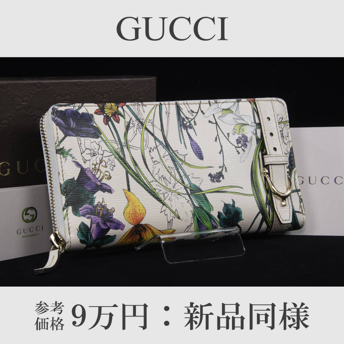 - 本物 送料無料 グッチ 長財布 ラウンドファスナー 新品同様 レディース 2015年限定 フローラ 白 緑 紫 黄色 赤 ピンク 珍しい 花 ロゴ D192