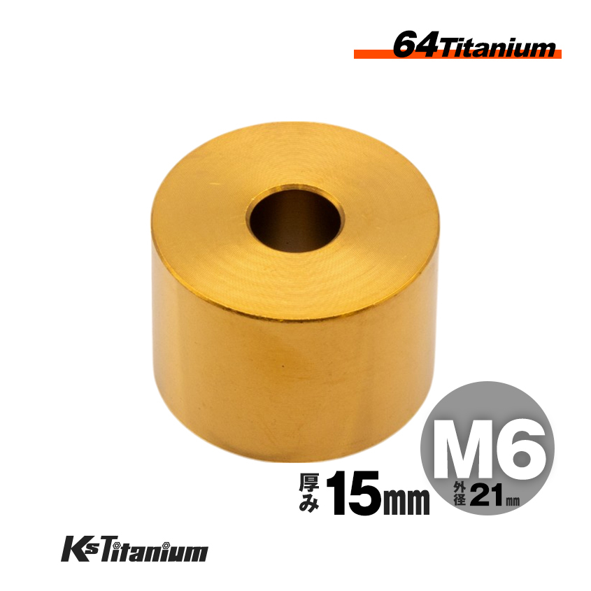 > チタン製 カラー スペーサー M6×21 15mm厚 ゴールド 1個売り チタン ワッシャー レストア カスタム ドレスアップ 隙間調整