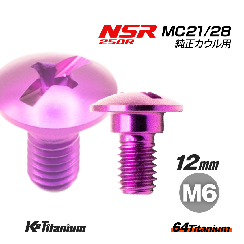 > チタンボルト M6×12 (8mm×3mm段付き) パープル 1本 ホンダ NSR250 MC21 MC28 スクリューA カウルボルト バイク レストア 90103-KV3-830