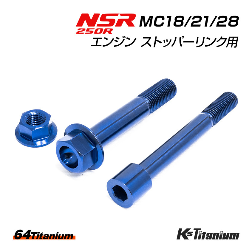 > NSR250R エンジン ストッパーリンク チタンボルト ブルー MC18 MC21 MC28 64チタン製 ボルト ナット 合計3点セット NSR250 レストア
