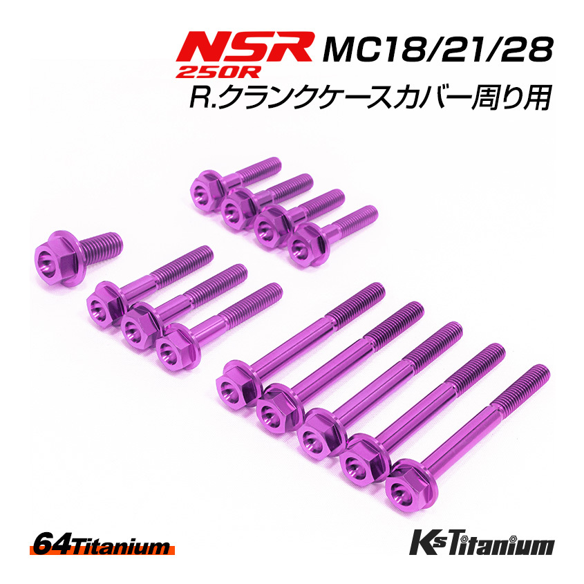 - NSR250 R. クランクケースカバー周り チタンボルト 13本セット パープル MC18 MC21 MC28 クラッチカバー 64チタン製 ボルト NSR レストア
