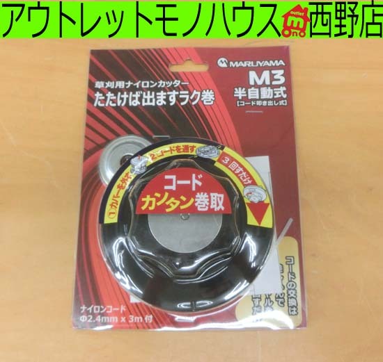 未使用 丸山製作所 草刈用ナイロンカッター たたけば出ますラク巻 M3 半自動式 ナイロンコード巾2.4mm×3m レタパ600対応 札幌 西野店