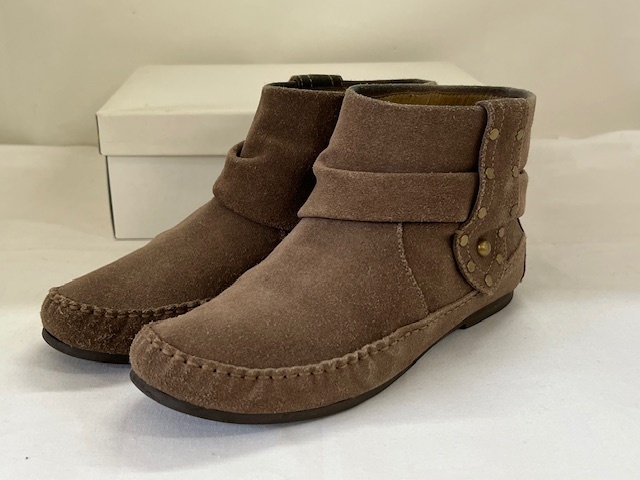 > 【菊水-473】(KH) GINZA DIANA ショートブーツ スエード レディース ダークベージュ 全長約25㎝ 中古品/(S)