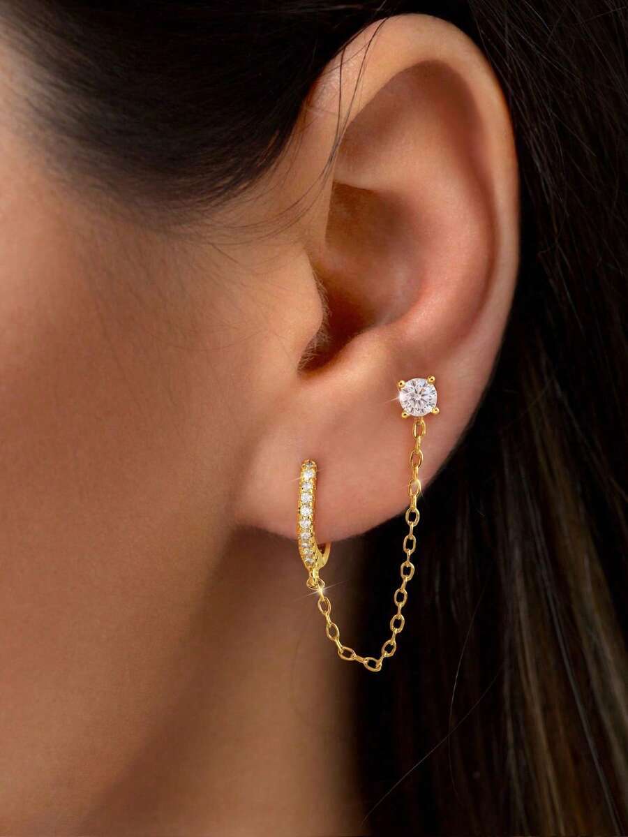 - ジュエリー レディース イヤーアクセサリー 1個 閃くフープチェーン ジルコニア インレイ ドロップピアス 女性 女性用ジュエリー