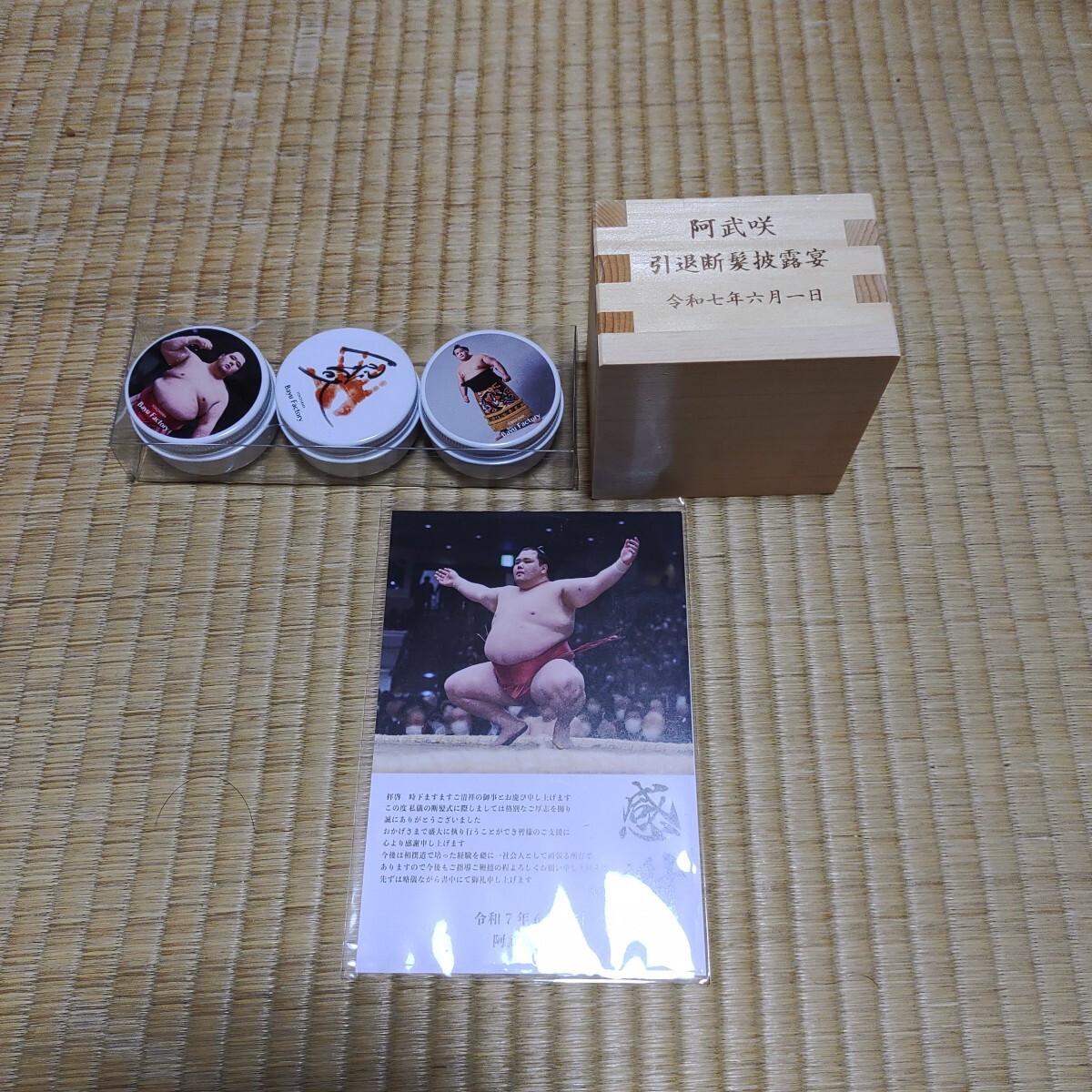 - 阿武咲 引退断髪式 ナチュラルバーム三点記念升カード