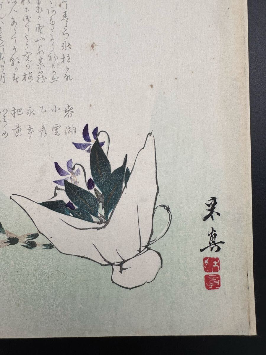 - 【真作】本物浮世絵木版画 柴田是真【花】明治期 錦絵 中判 保存良い