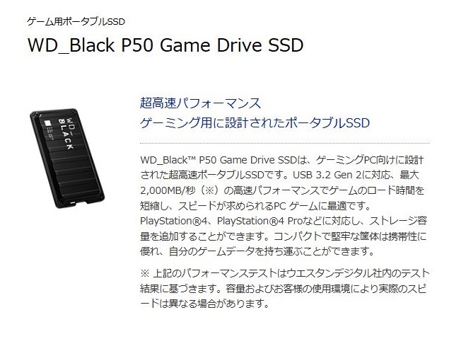- ◆送料無料◆新品◆ウエスタンデジタル◆ゲーミング用ポータブルSSD 500GB◆WD_Black P50 Game Drive SSD◆WDBA3S5000ABK-JESN◆即決◆