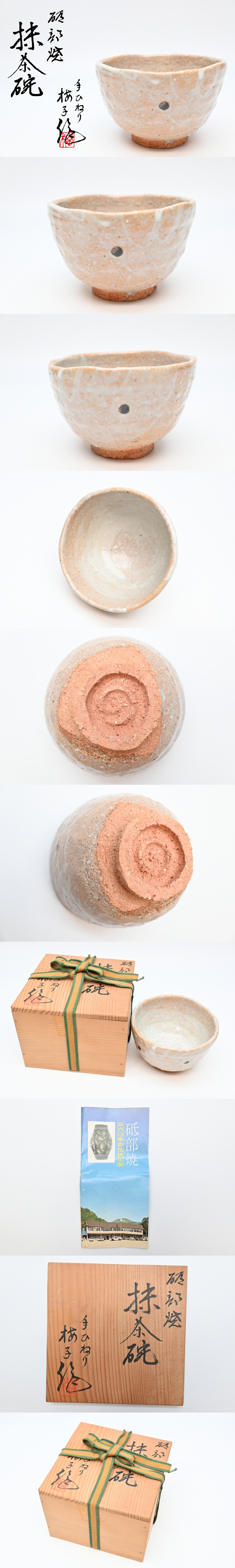- 砥部焼 梅子 茶碗 ■ 手ひねり 抹茶碗 裏印 茶道具 栞 布 共箱入り ■