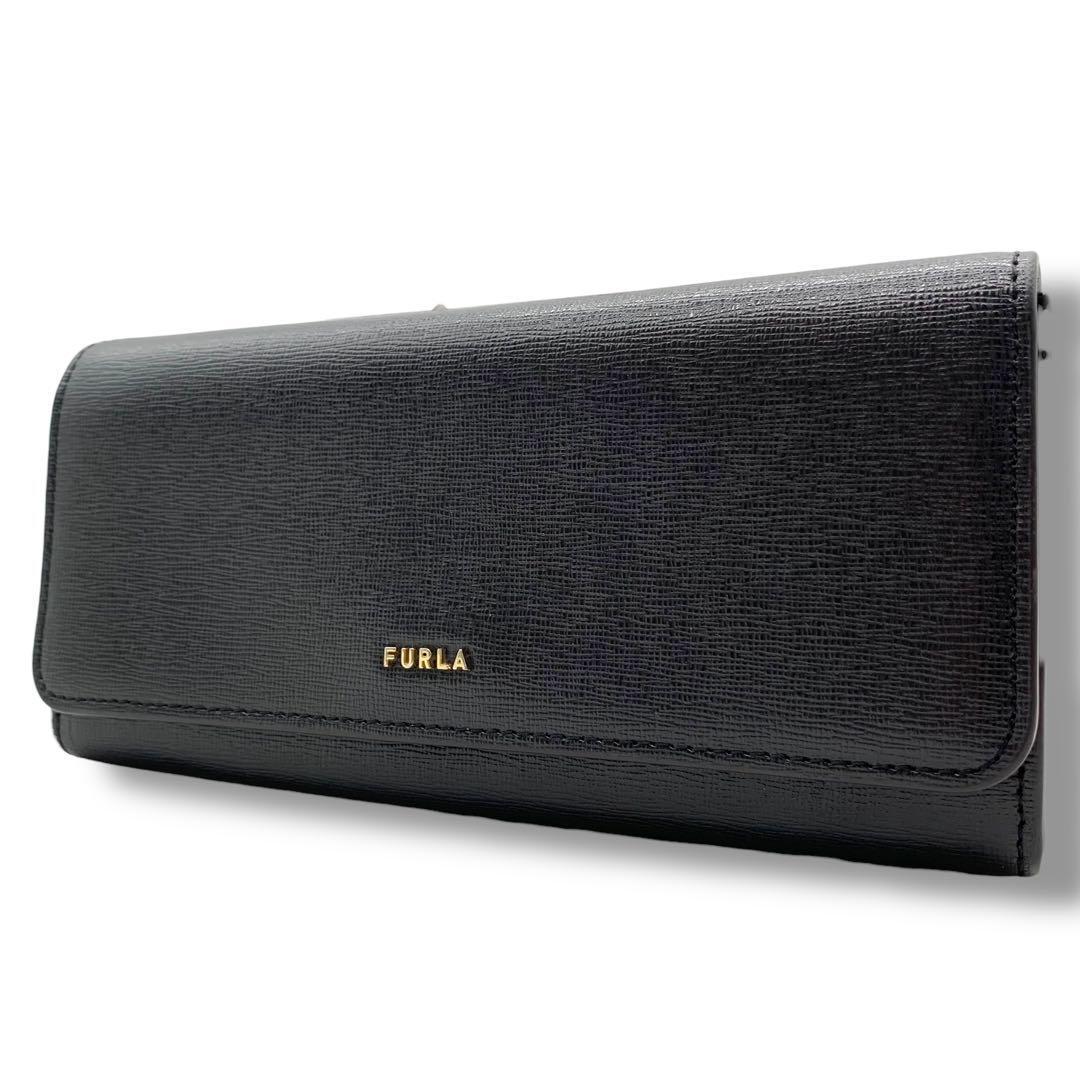 - 極美品 フルラ 折りたたみ 長財布 黒 ブラック レザー