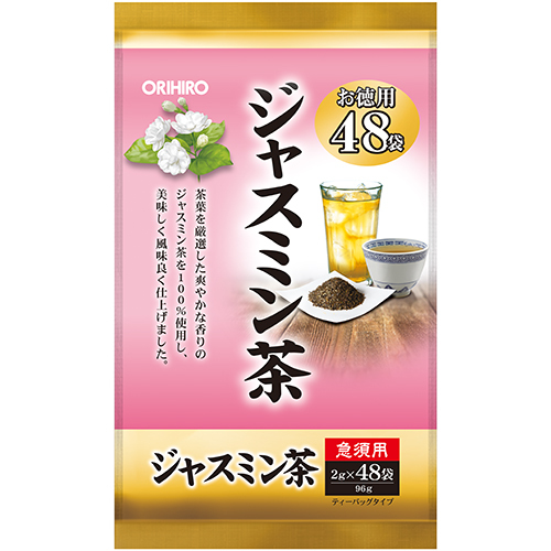 〇注意事項・送料750円が販売価格に含まれています・お取り寄せ商品です。弊社にて手配後、メーカー・卸業者からの直送になります。・まれにメーカー欠品、出荷遅延等が発生致します。問題発生時は別途メールにてご連絡致します。・配送方法の指定、日時指定、置き配、ギフト対応、他商品との同梱配送などは対応できません。・まとめ買いや複数購入の場合は通常より発送に時間が掛かる場合がございます・複数個口の場合、2階以上への搬入ができない場合があります。(その場合は1階での受け渡しとなります)・大型連休、お盆、年末年始などは発送をお休みさせていただく場合がございます・メーカー都合により、パッケージは予告なく変更される場合がございます・梱包用のダンボールはリサイクル品を使用させていただきます。・注文に関するご連絡(注文確定通知・発送通知など)はメールでご案内させていただきます※商品ページの内容について、少しでもご不明な点などがございましたら購入前に一度ご連絡ください〇商品説明厳選ジャスミン茶100%使用1)ジャスミン茶を厳選して丁寧に焙煎2)毎日の健康に、お徳用ティーパック(48袋)3)香り高い本物の美味しさ!!リラックスタイムに!4)残留農薬323種類検査済み〇商品仕様内容量:2g×48袋入数:24×1賞味期限:2年重量121g(ケース重量3.48kg)規格【原材料】ジャスミン茶(中国)注意事項【利用方法】<急須使用の場合>温めた急須にティーバッグを1袋入れ200ml〜300ml熱湯を注ぎ、3〜5分時間をおいてからお好みの濃さでお召し上がりください。【保存方法・注意事項】●一度使用したティーバッグの再利用はご遠慮ください。●ティーバッグをそのまま入れておきますと、苦みがでてくることがありますので必ず取り出してください。●抽出したお茶に沈殿物やにごりを生じる場合がありますが、品質には問題ありません。●本品は植物を原料として使用しておりますので、商品によっては風味や色に差が生じる場合がありますが、品質には問題ありません。●本品は熱湯を使いますので火傷に気をつけてください。●体質に合わない場合や、体調がすぐれない方はご利用を中止してください。●電子レンジでの加熱は、突沸(急激な沸騰)の恐れがありますのでご注意ください。●開封後は外袋の封をしっかり閉めるか密封できる容器に移して、湿気に注意して保存し、早めにお召し上がりください。●抽出したお茶は1日以内にお召し上がりください。 △食生活は、主食、主菜、副菜を基本に、食事のバランスを。(出典:オリヒロ株式会社)