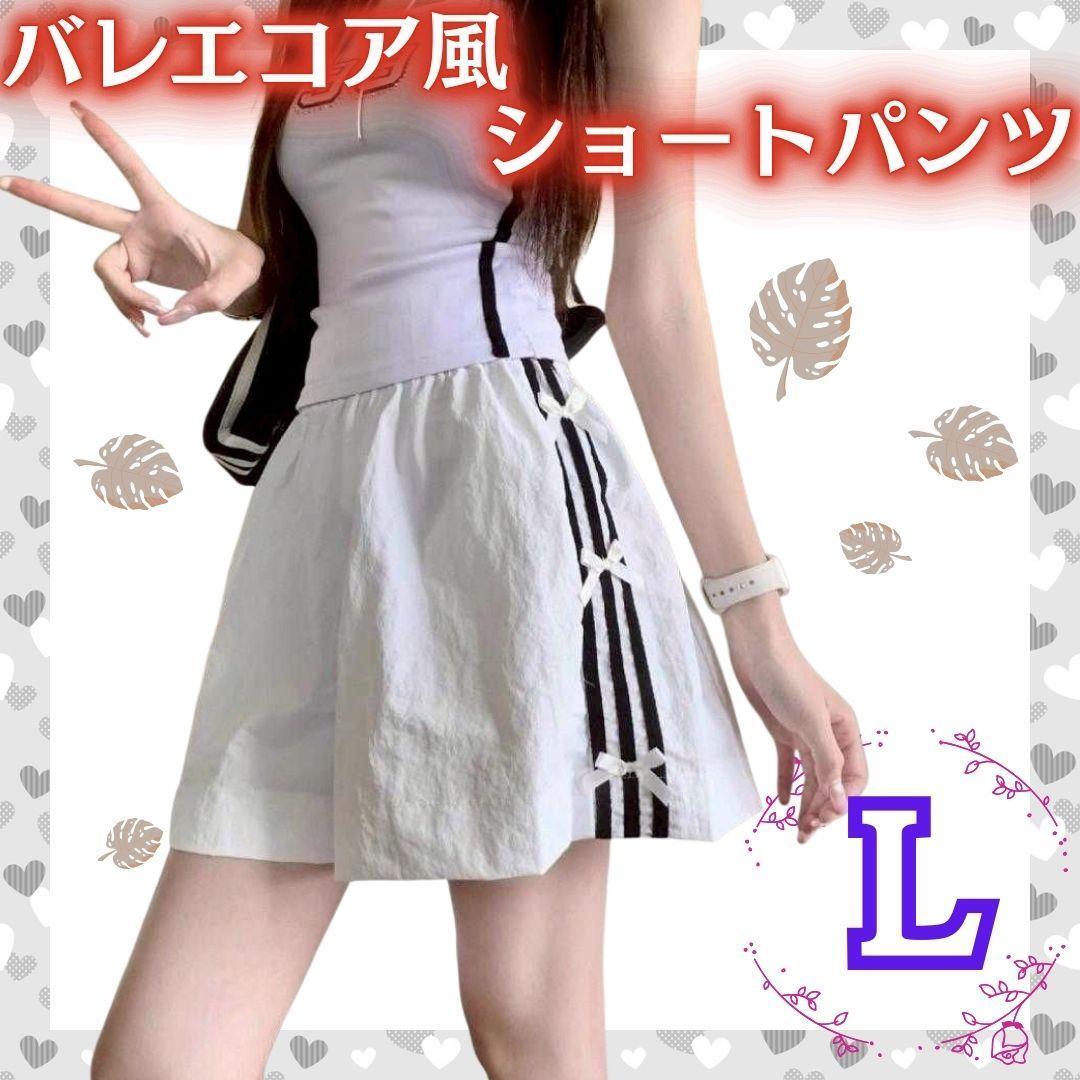 - サイドライン リボン ショートパンツ L ガーリー 美脚 フレア ホワイト