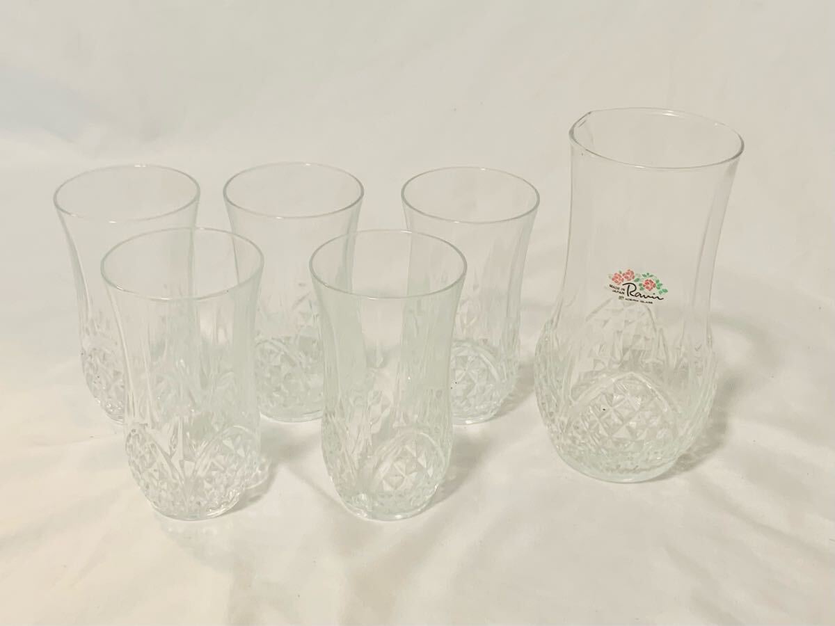 - 未使用品 ADERIA GLASS 石塚硝子 アデリア ガラス カットガラス 彫刻 カラフェ コップ 5客セット 昭和レトロ アンティーク