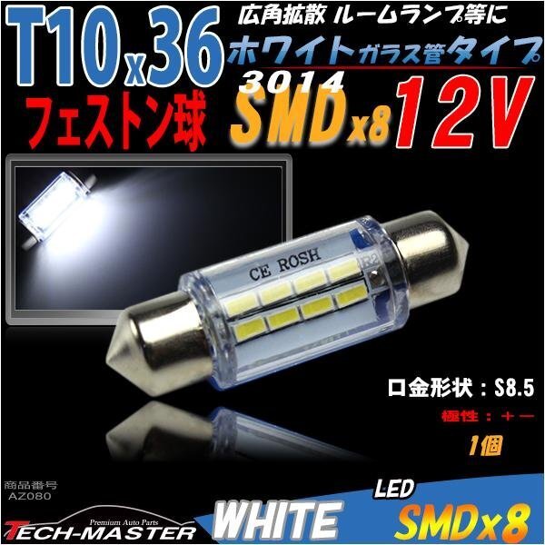 - T10×36mm ルームランプ 白 SMD 8発 フェストン 1個 AZ080