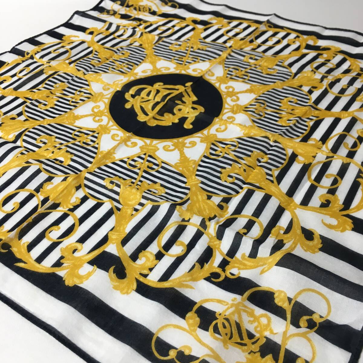 - 78B121|未使用|ディオール ハンカチ 綿100% ブラック