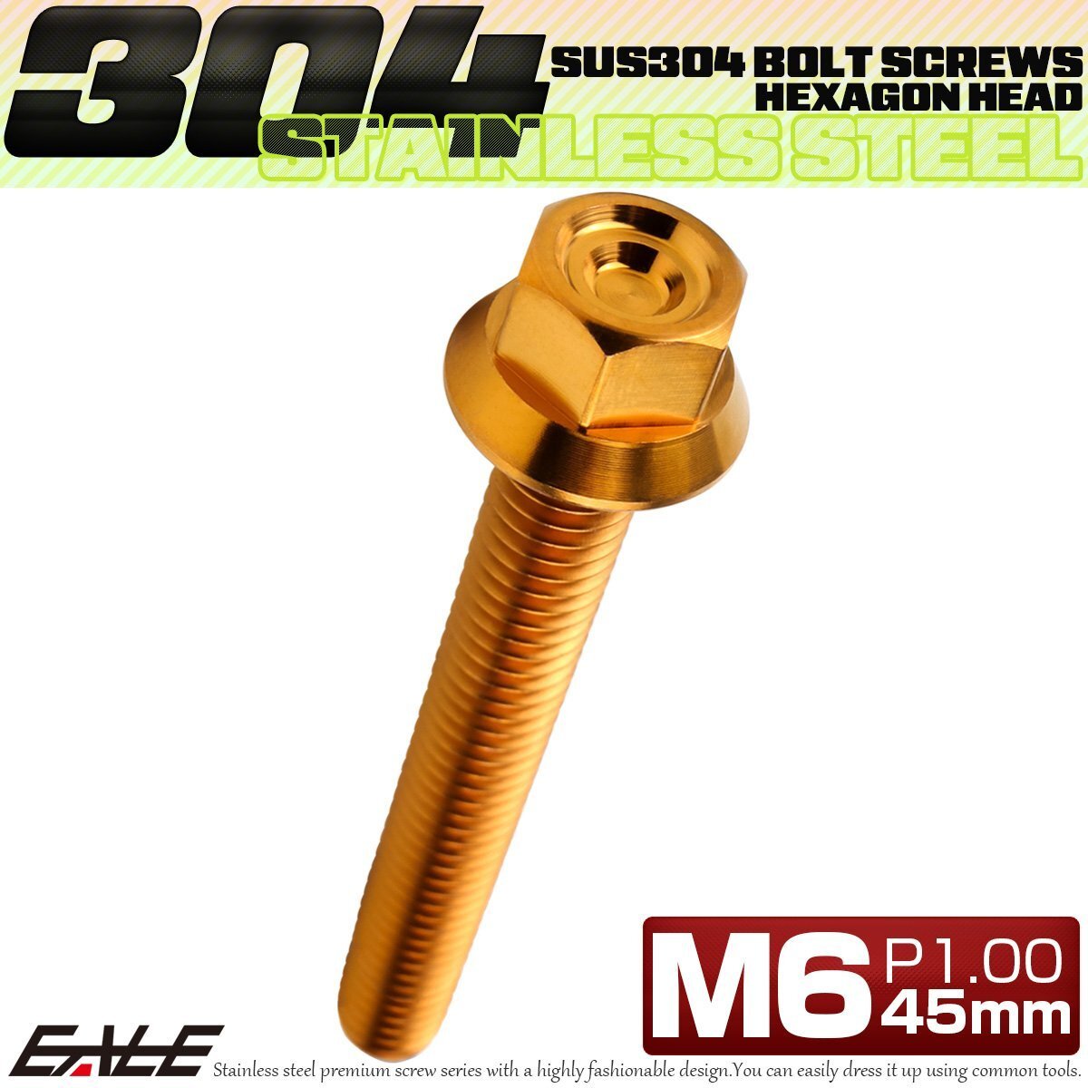 - M6×45mm P1.00 フランジ付き 六角ボルト ヘキサゴンヘッド CNC SUS304 ステンレス ゴールド TB1278