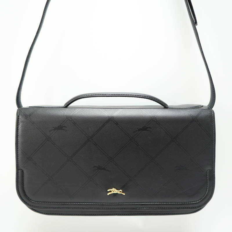 - LONGCHAMP ロンシャン ロゴ総柄 レザー 2WAY ハンドバッグ ショルダーバッグ ブラック M09-k006