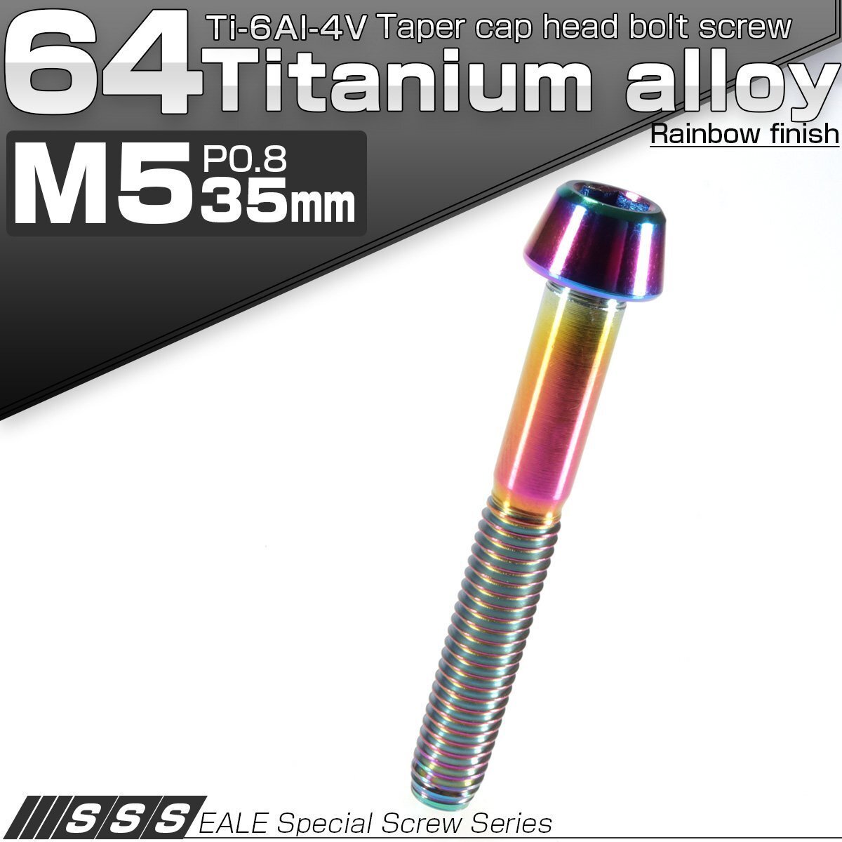 - チタンボルト M5×35mm P0.8 キャップボルト 虹色 レインボー 六角穴付きボルト テーパー JA366