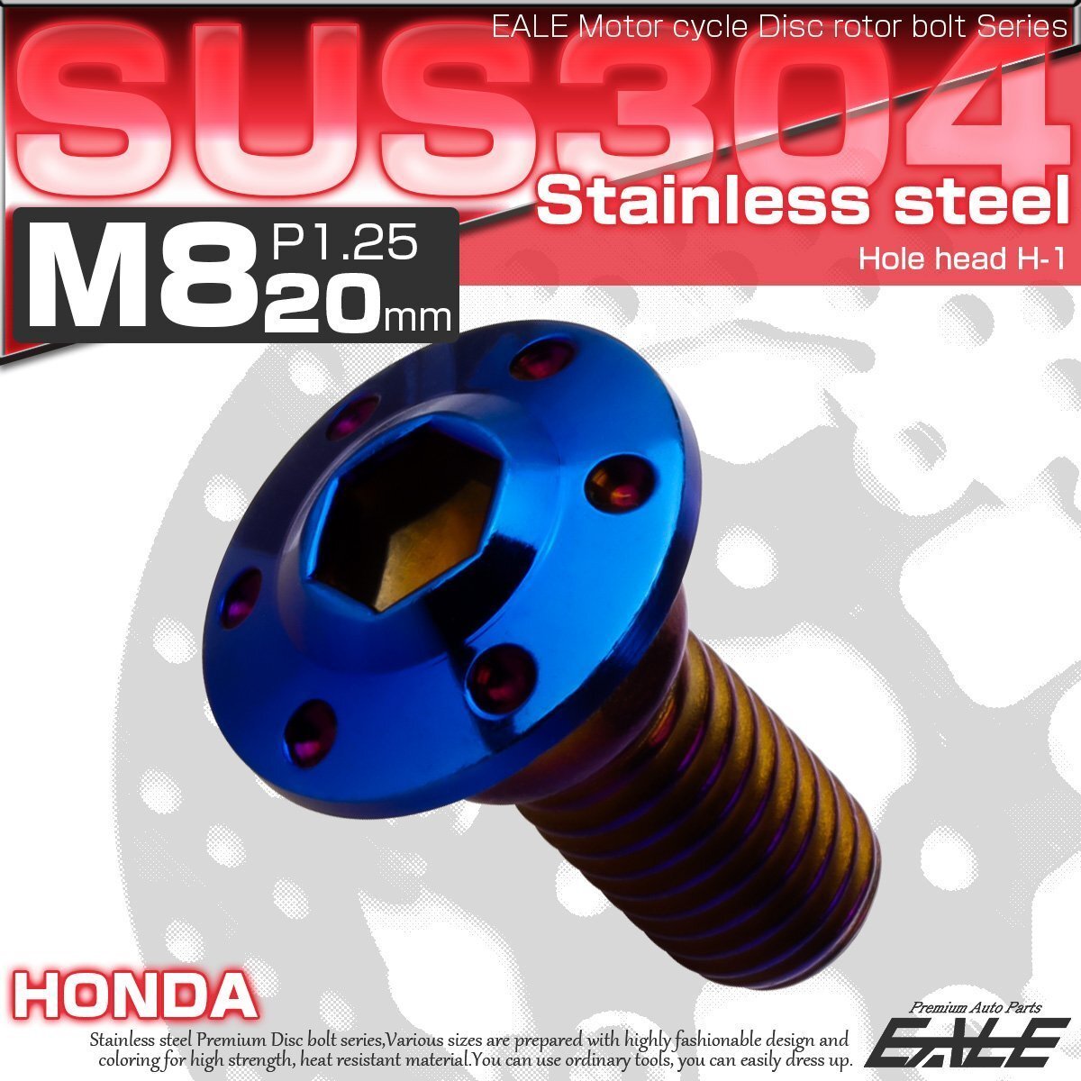 - ブレーキ ディスクローター ボルト ホンダ用 M8×20mm P=1.25 ステンレス 削り出し ホールヘッド H-1 焼チタンカラー TD0006