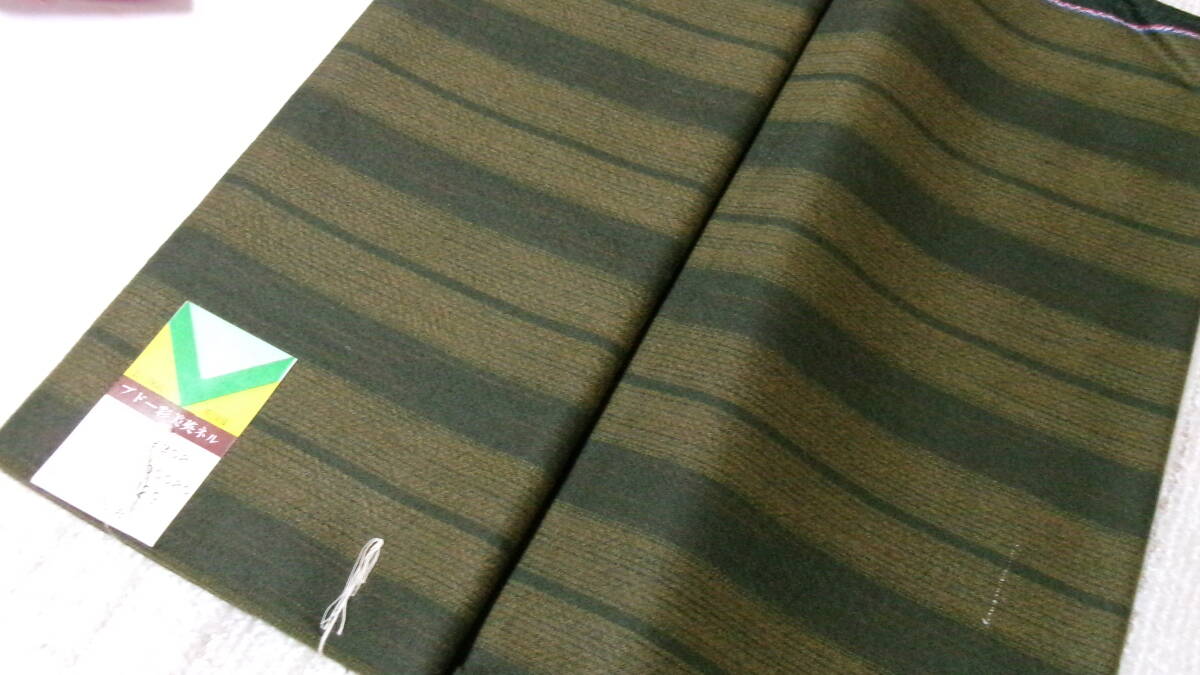 > 107【未使用】多用※BUDO※彩美英ネル※縞模様※毛100%※経年保管品※ウール布※76㎝×5,8m。:*