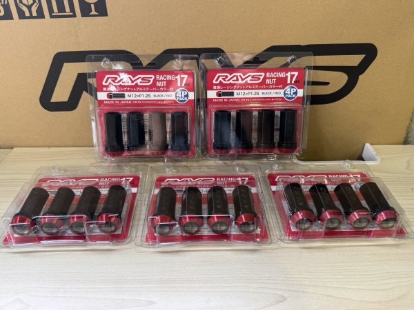 - 【即納】RAYS レイズ 貫通レーシング2ピースナット レッド L48 17HEX M12×P1.25 4Pパック×5 合計20個(5H用)