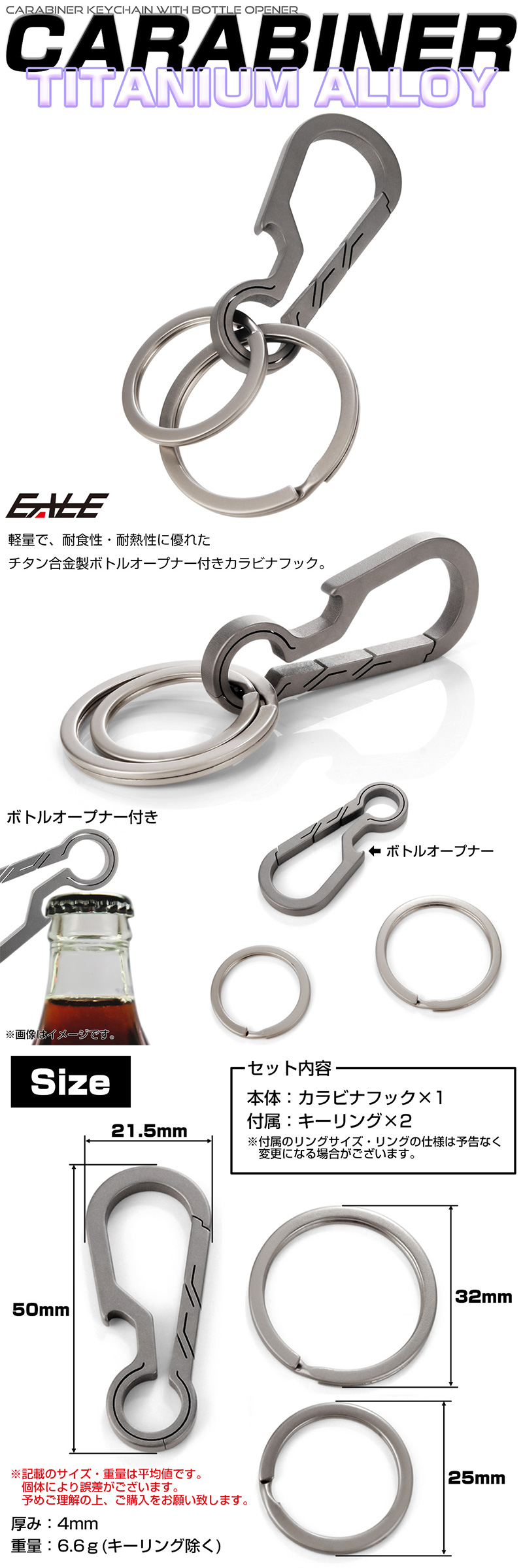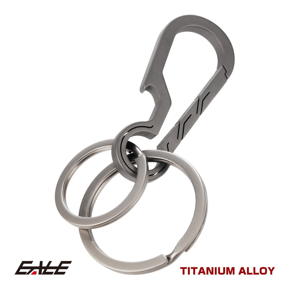 - チタン合金製 カラビナ フック キーホルダー ボトルオープナー キーリング付き シルバー MG0001