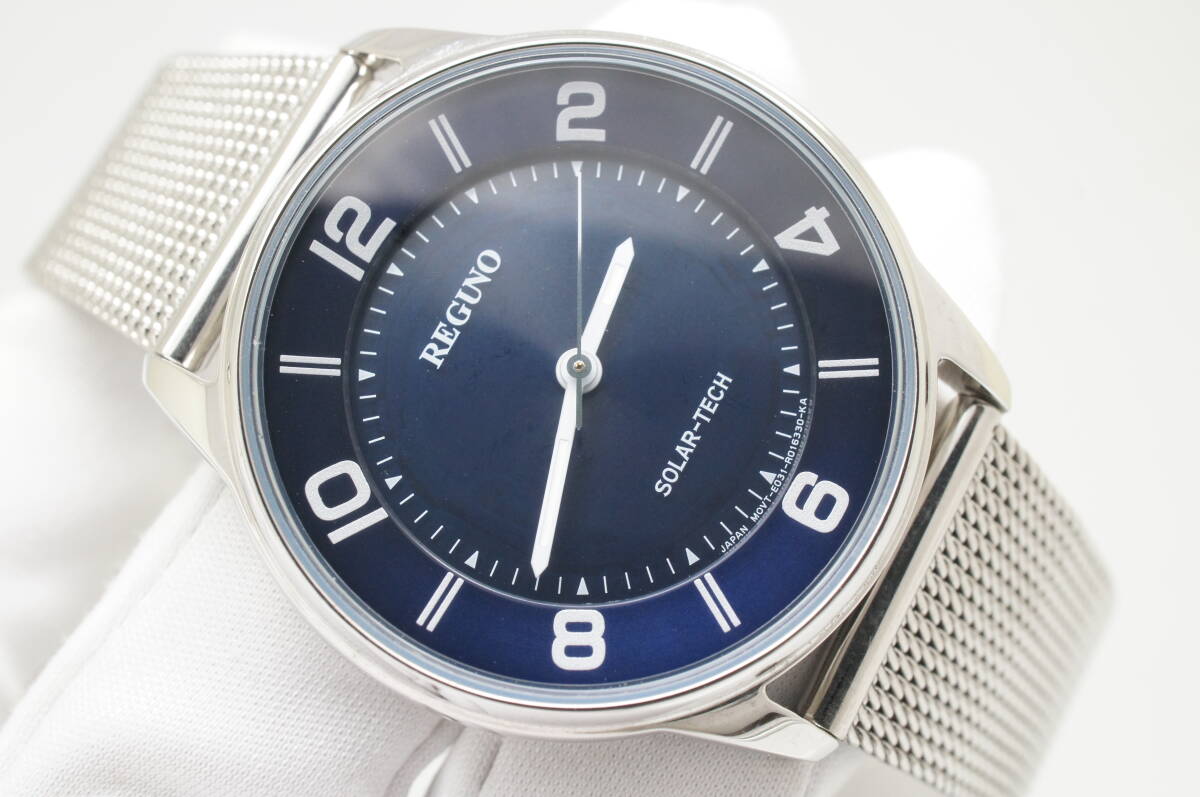 > Z26●作動良好 美品 CITIZEN シチズン REGUNO レグノ SOLAR-TECH ソーラーテック E031-R004115 紺文字盤 メンズ腕時計 シルバー お洒落