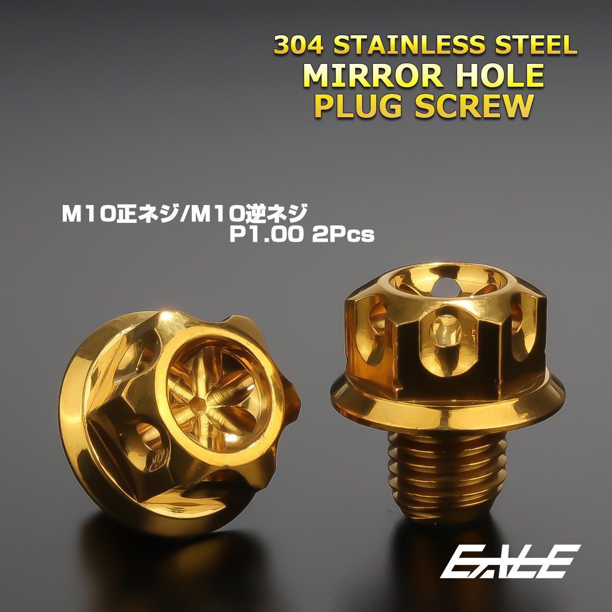 - M10 ミラーホール カバーキャップ ボルト フラワー ゴールド 正ネジ/逆ネジ 2本セット ミラー ネジ穴 キャップ TH0648