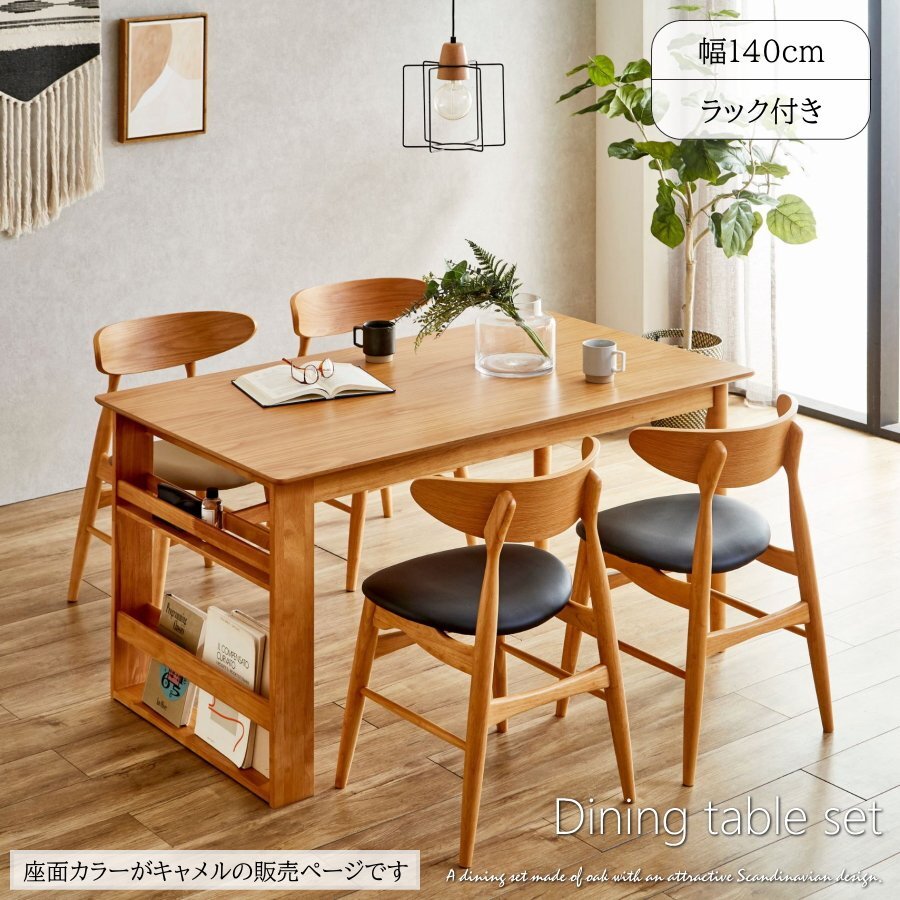 - ダイニングテーブルセット テーブル チェア 北欧 ダイニング 食卓 4人 5点 オーク材 ラック付き 収納 送料無料(一部除)新品未使用 C878C1