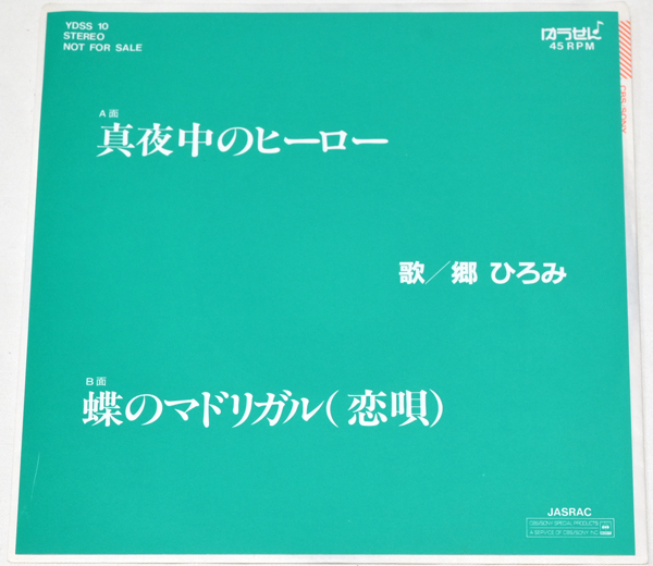 > 郷 ひろみ「真夜中のヒーロー」「蝶のマドリガル(恋唄)」 ゆうせんプロモーションレコード 未試聴 中古シングルレコード