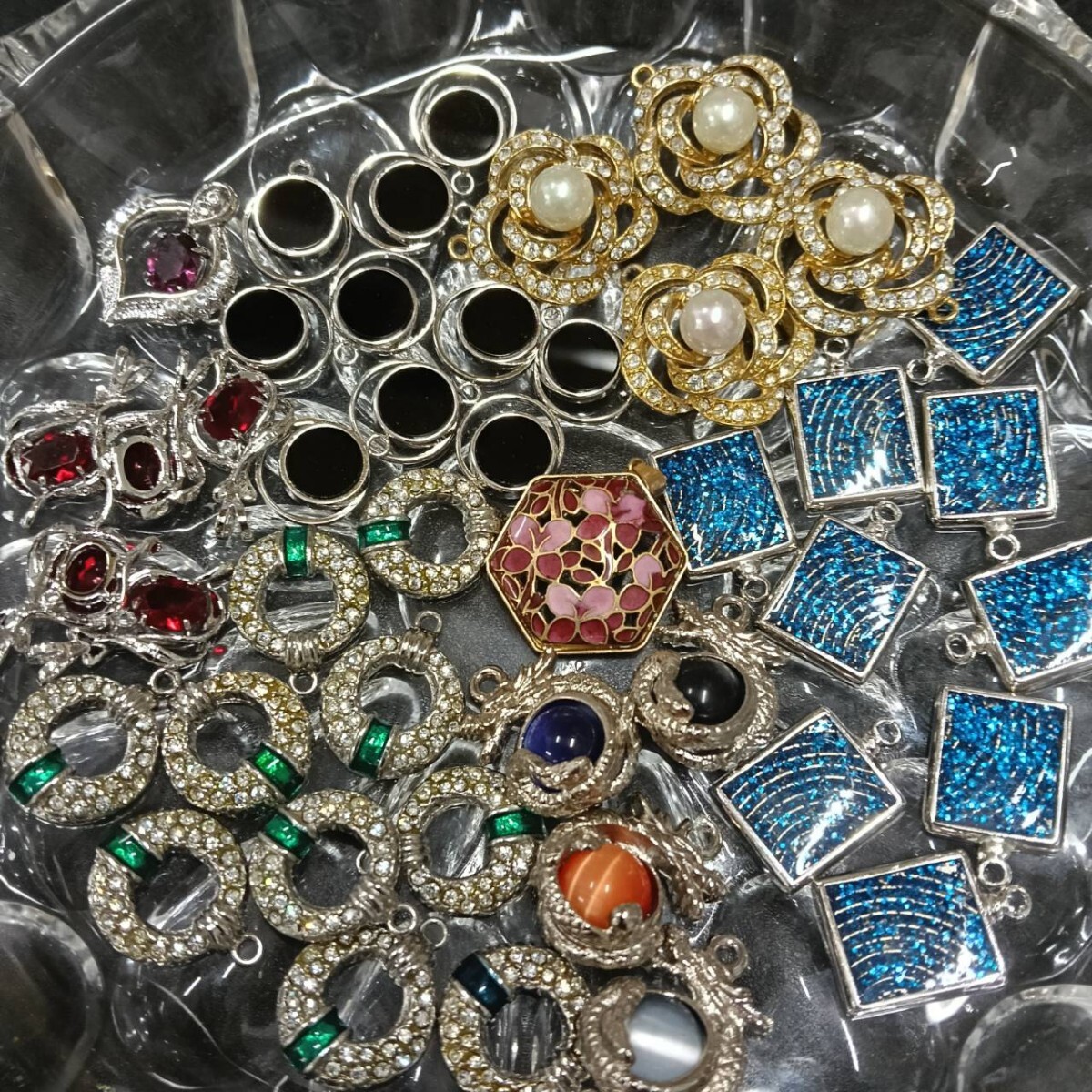 > ☆未使用 大量 ペンダントトップ パーツ スワロフスキーラウンド スクエア フラワー 137g 22~13mm ゴールド色 シルバー色 ネックレス B-396