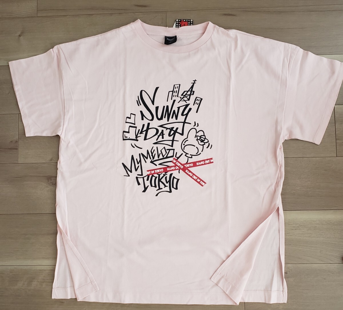 > XLサイズ 新品 未使用 サンリオ マイメロディ オーバーサイズ Tシャツ マイメロ ピンク 綿100 5分袖 サイドスリット有 GU 送料無料