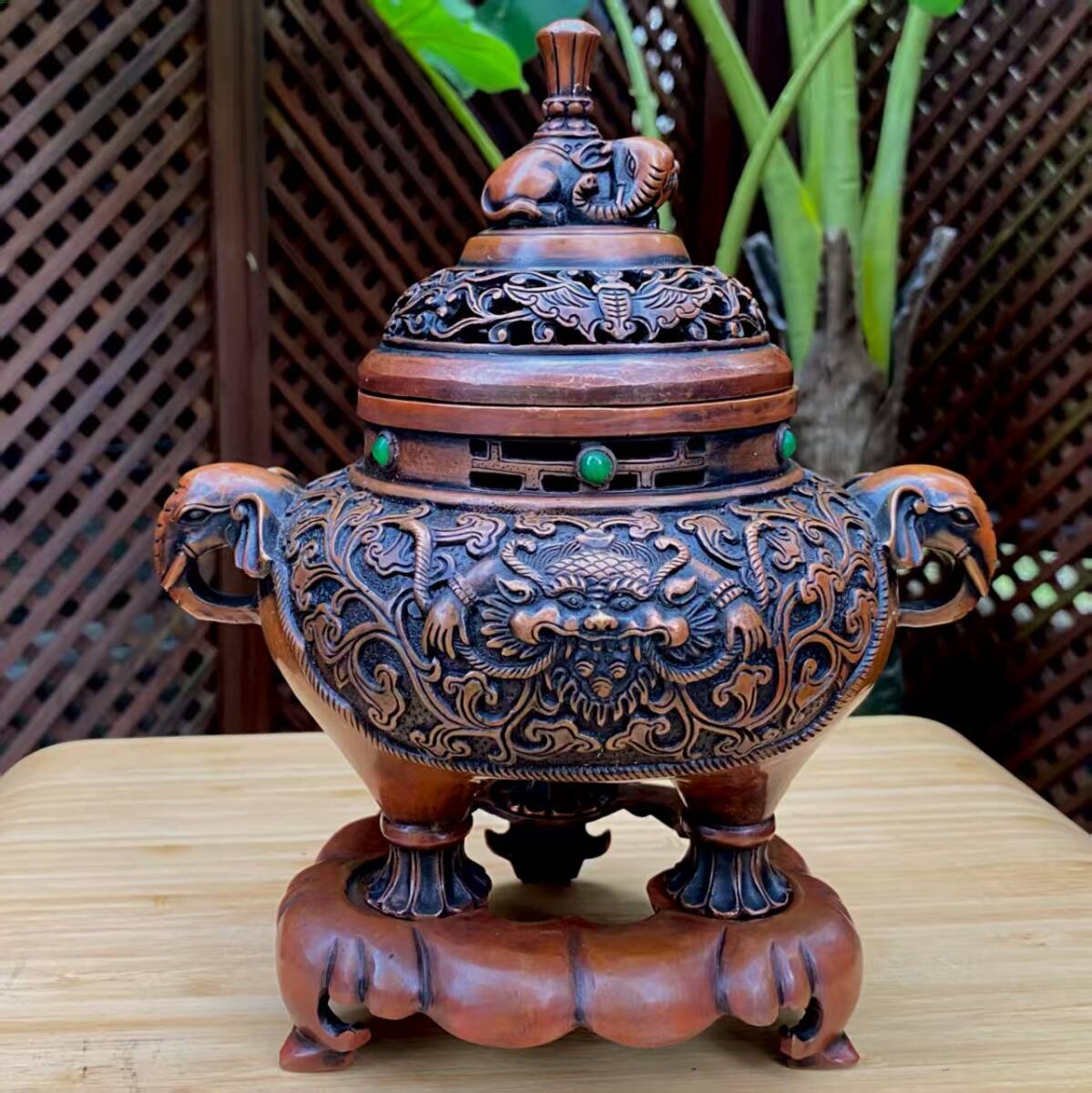> 香炉 時代旧蔵 清時代 乾隆年制 古銅に宝石をちりばめた町家魔除けの燻製炉 銅製 仏教古美術 廃寺旧蔵 廃寺買出品 古置物 古玩 MS6-030625