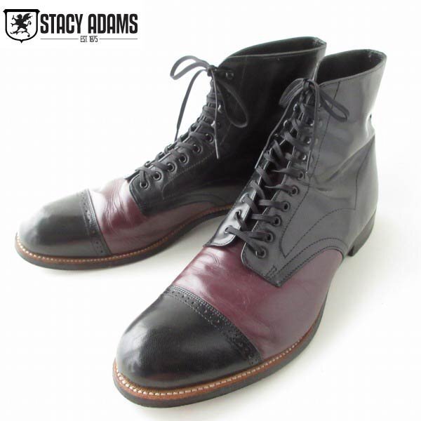 > STACY ADAMS ステイシーアダムス アンクル ブーツ 28.5cm 黒×ワイン系 パンチドキャップトゥ D150-32-0061ZV