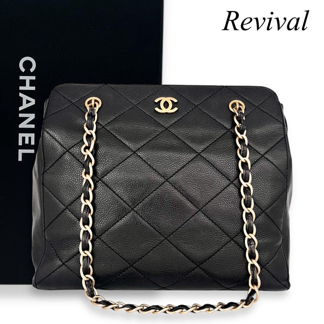- 【美品】シャネル マトラッセ キャビアスキン チェーントートバッグ 黒 529