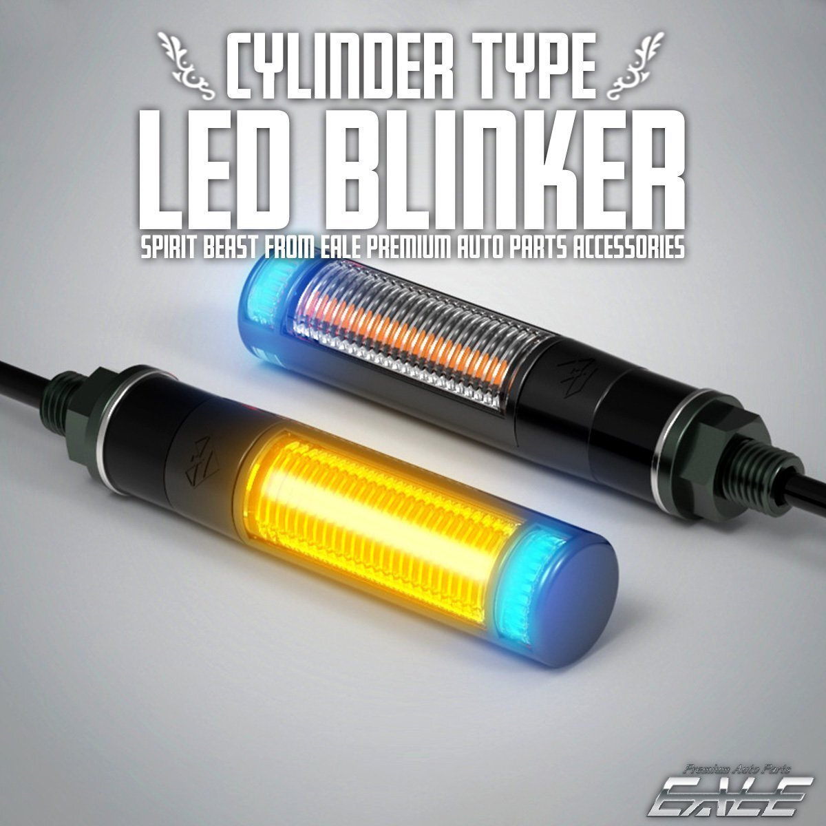 - 汎用 LED ウインカー ブルー マーカーランプ付き シリンダー型 ポイント DRL デイライト付き F-294-B